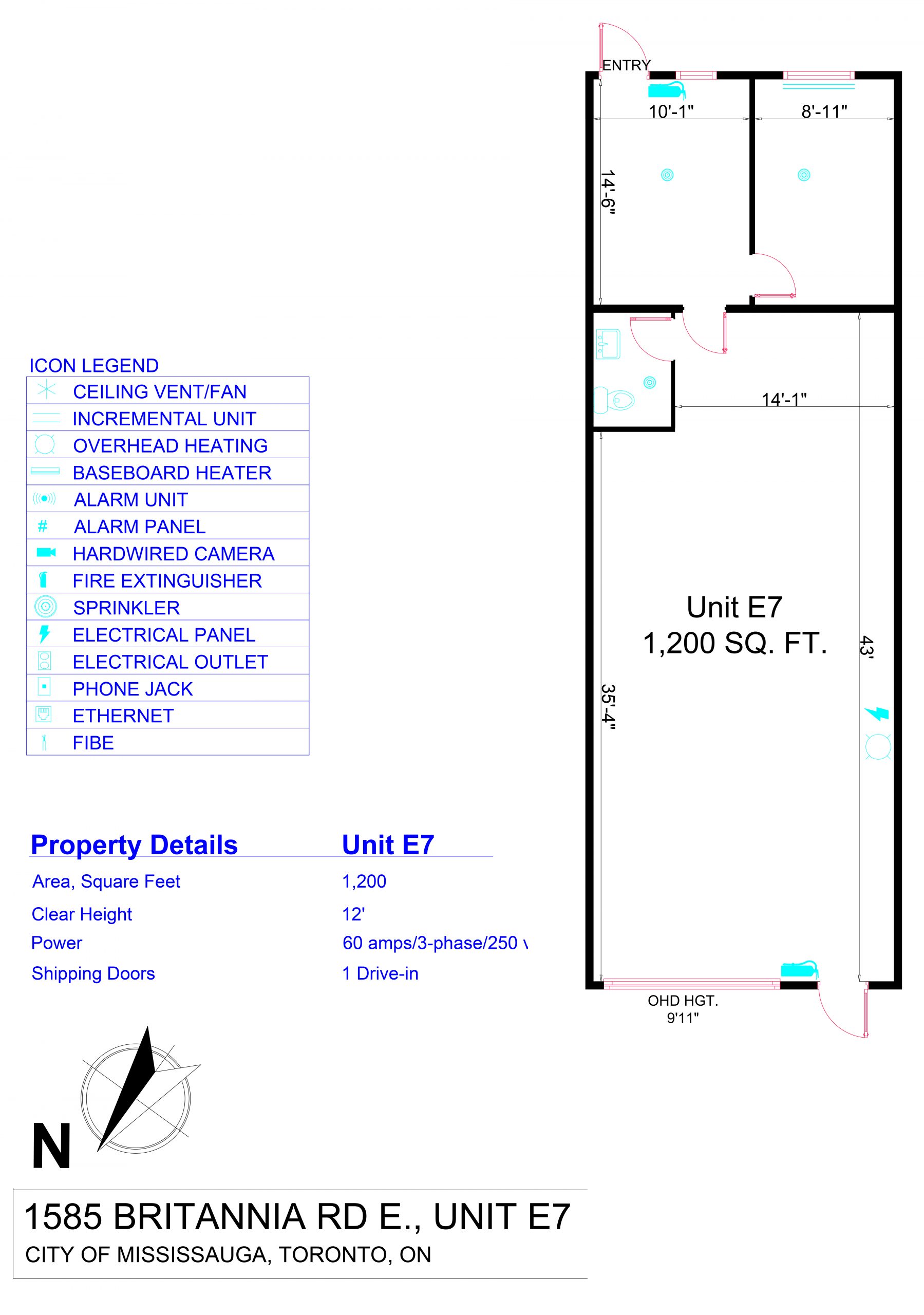 Industrial Unit available for lease with drive-in door and partial office High ceilings (12′), 60 Amps power, and a drive-in shipping door makes this 1,200 Square Foot space an ideal spot for your business!